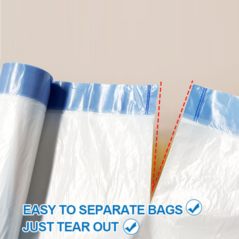 ひも付きのデザインで、ゴミを捨てる際に内蔵のプラスチック製のひもを引き出すだけで、素早くゴミ袋を密閉できます。