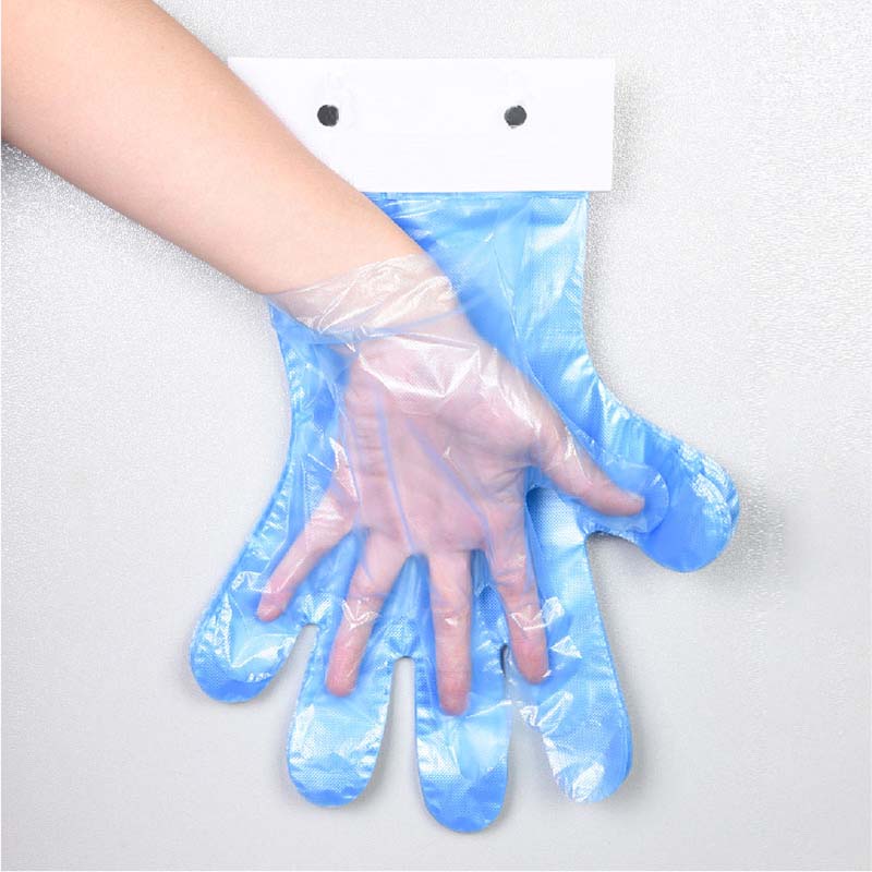 上部の台紙が100枚の手袋すべてを束ねる形になっており、吊り下げて1枚ずつ引っ張りだして使えるつくりです。吊り下げタイプで装着も簡単、着脱しやすい、表面にザラザラした質感のデザインがあり、耐摩耗性と滑り止め、強力な抗引き性能があります。