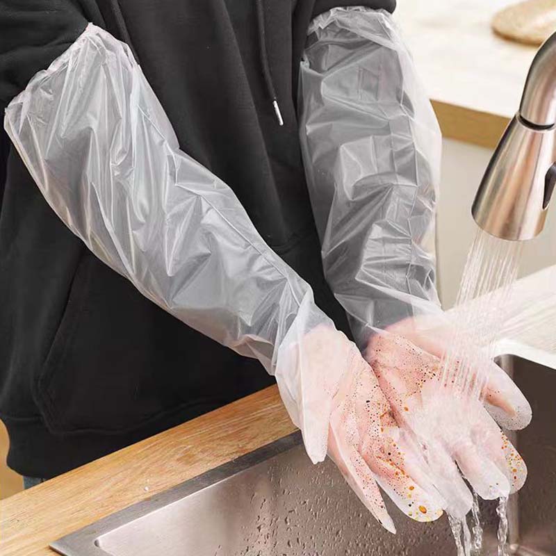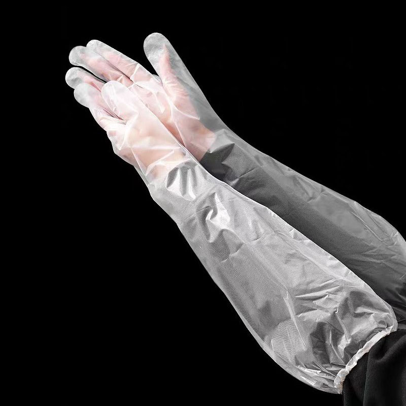 使い捨て手袋 、ロング 腕カバー、 フリーサイズ、 水回り 作業用手袋 、ロング ゴム付 、エンボス加工、食品衛生法適合